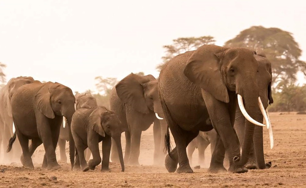 animals. Herds of elephants, impalas, and zebras, all of which traverse the